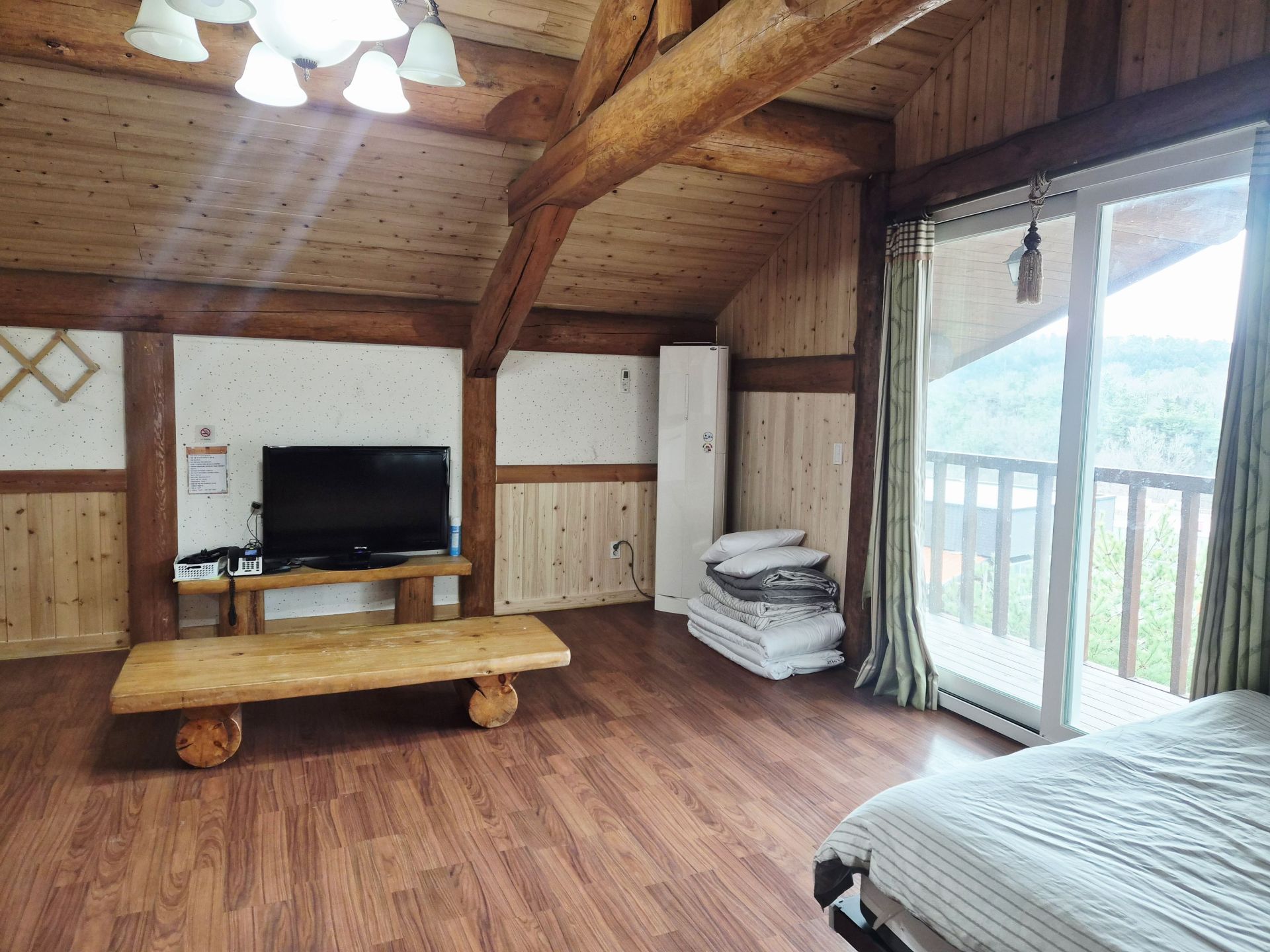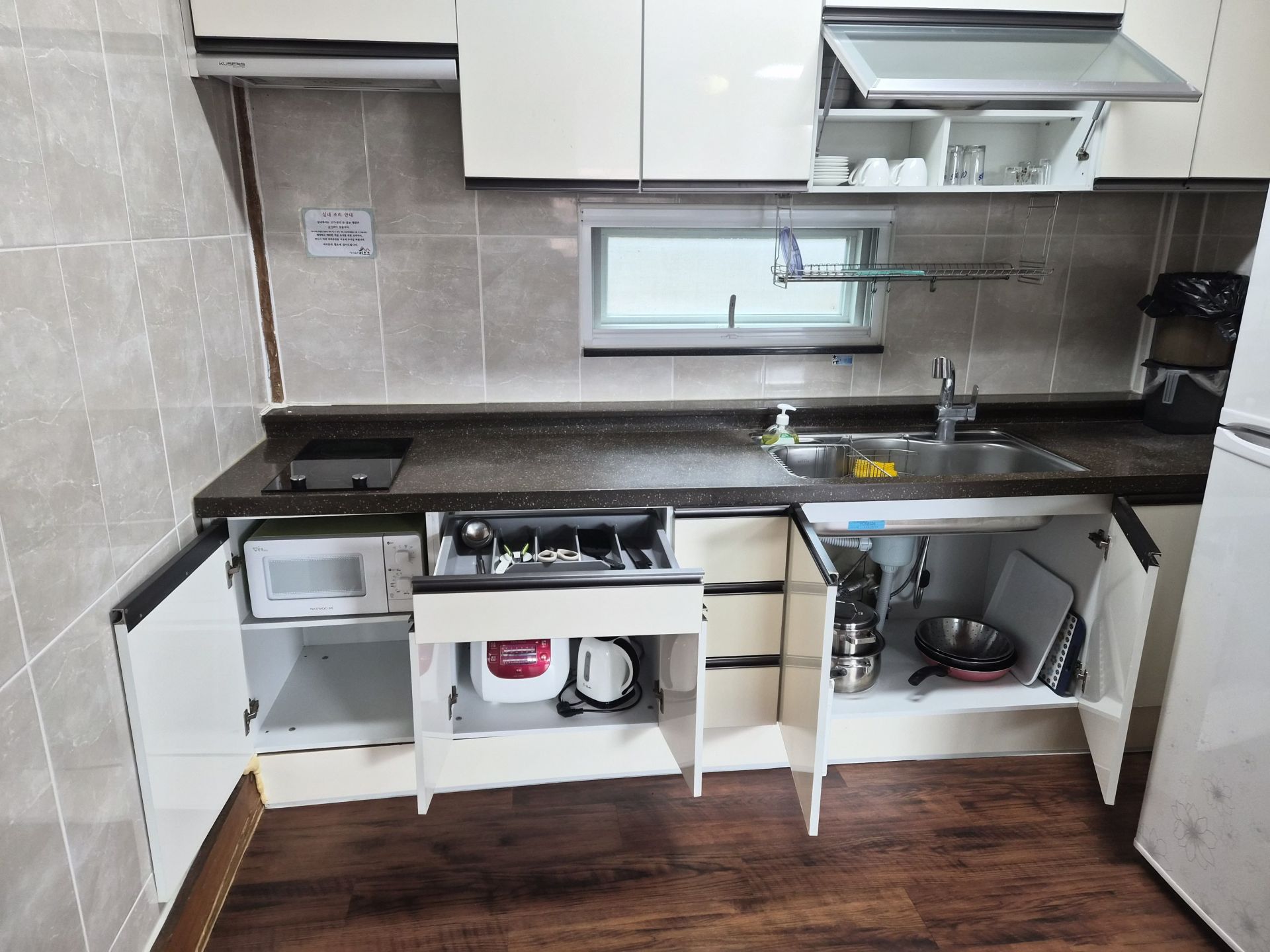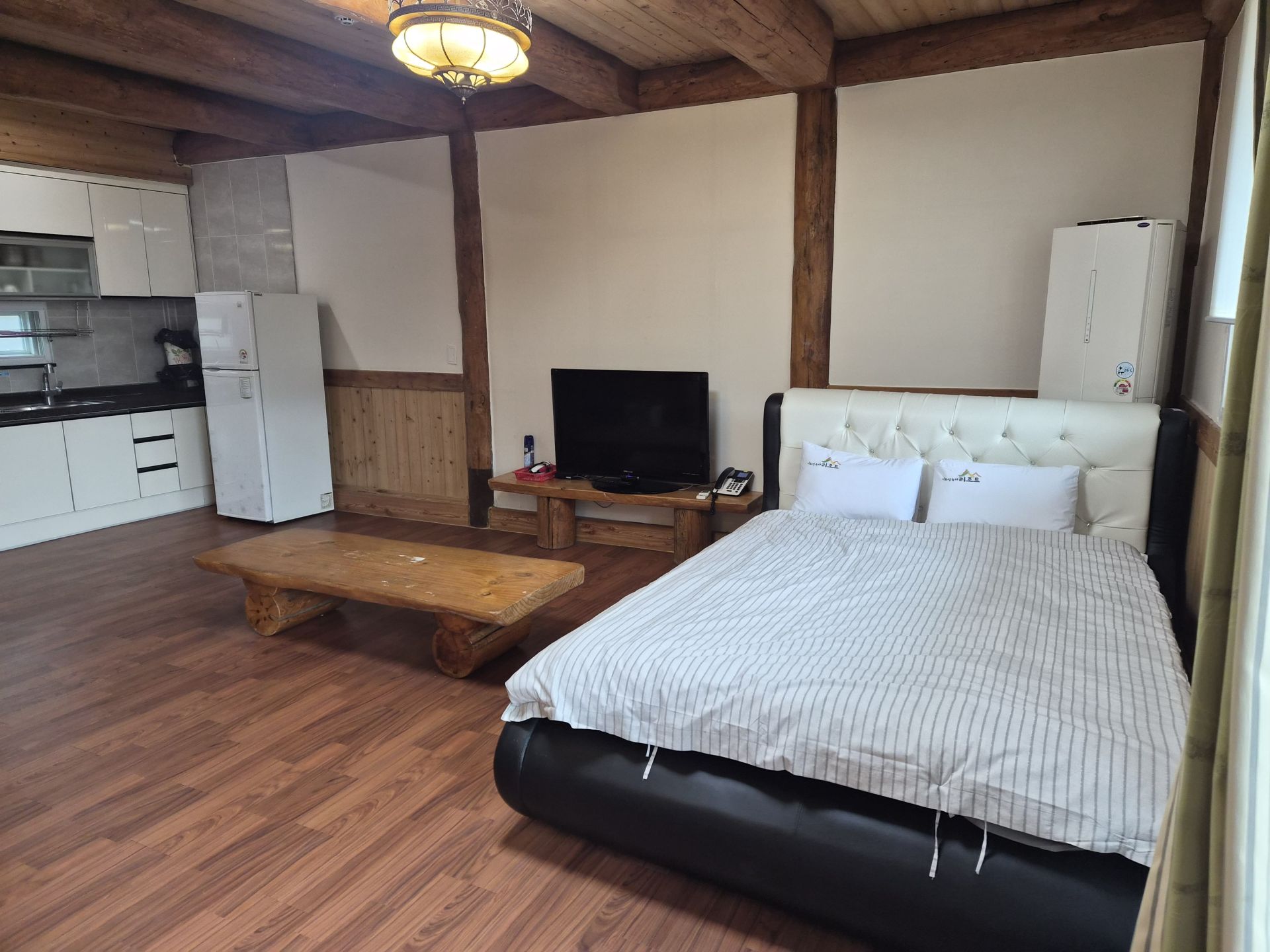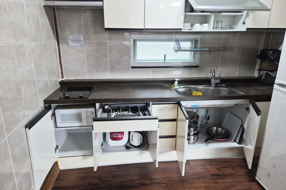- 시설 : TV. 와이파이. 인덕션. 냄비. 후라이펜. 냉장고. 전자렌지. 전기포트. 에어컨. 보일러. 바디워시. 샴푸. 컨디셔너. 수건. 요이불 4세트 . 드라이기