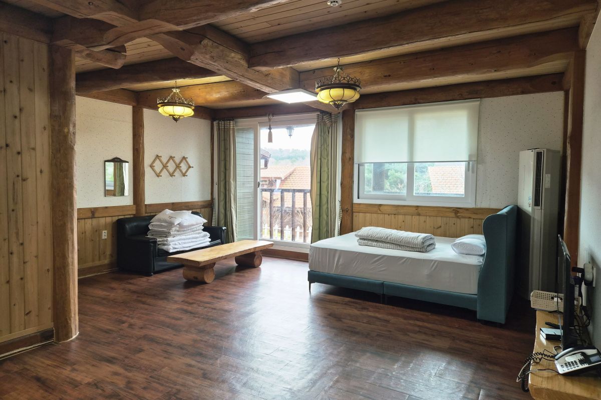 16평 객실은 최대 4인이 머물기에 적합한 원룸형 객실로 넉넉한 공간에서 편안하게 쉴 수 있으며 객실입니다.
